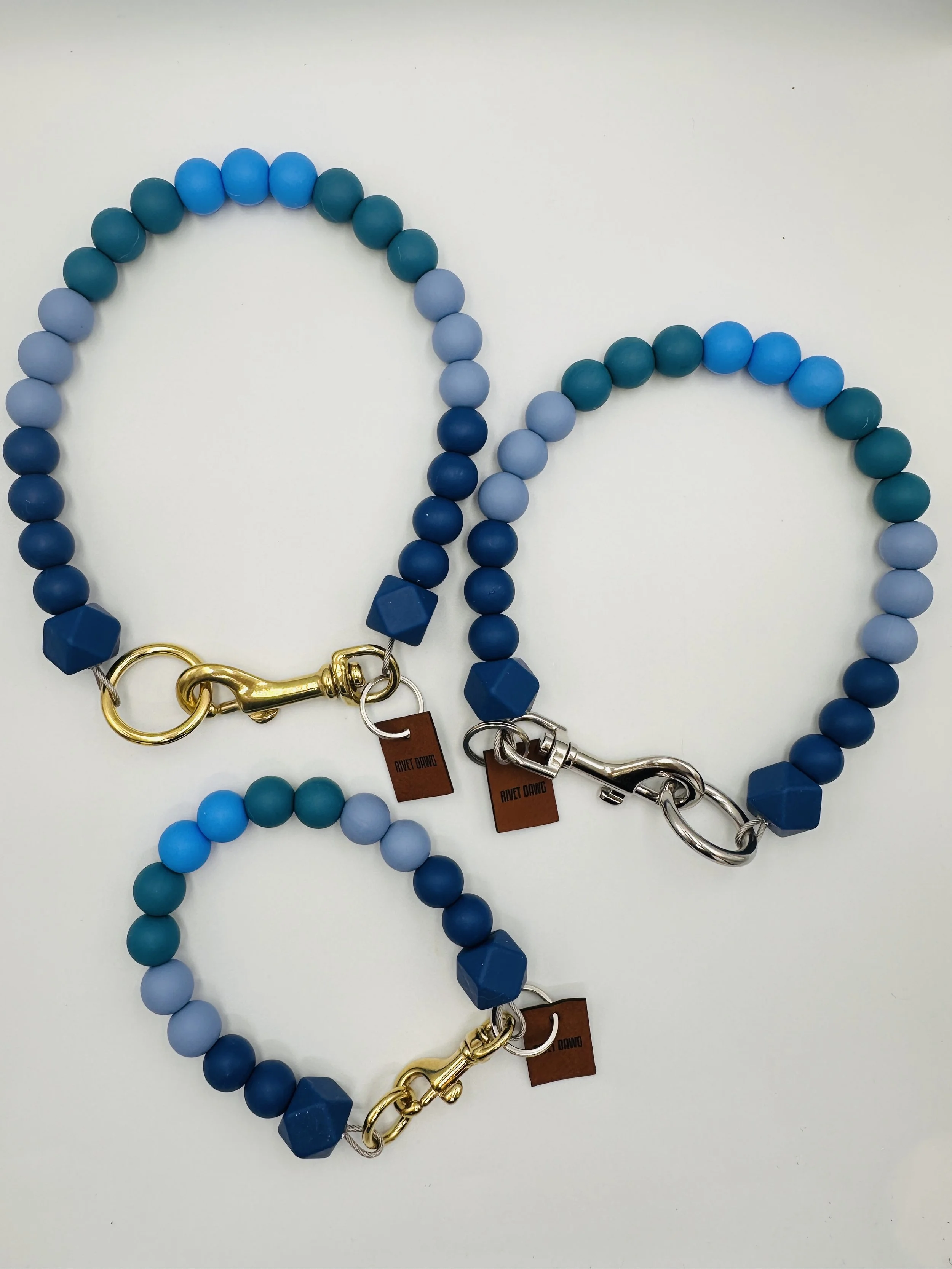 Handcrafted from luxurious silicone beads and strung on coated aircraft cable, our signature designs or your own custom choice of colours, Rivet Dawg Bead Collars are extremely strong, durable and suitable for every day use. Choose from one of our popular signature designs, or design your own!